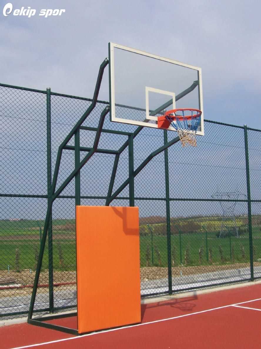 Basketbol Potası 4 Direk Sabit Model 15 mm Cam (Ak) Panya 105 x 180 cm. 20 Sabit Çember