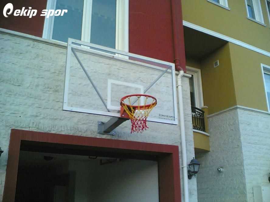 Basketbol Potası Duvara Montaj Sabit 10 mm Cam (Ak) Panya 105 x 180 cm 20 Sabit Çember
