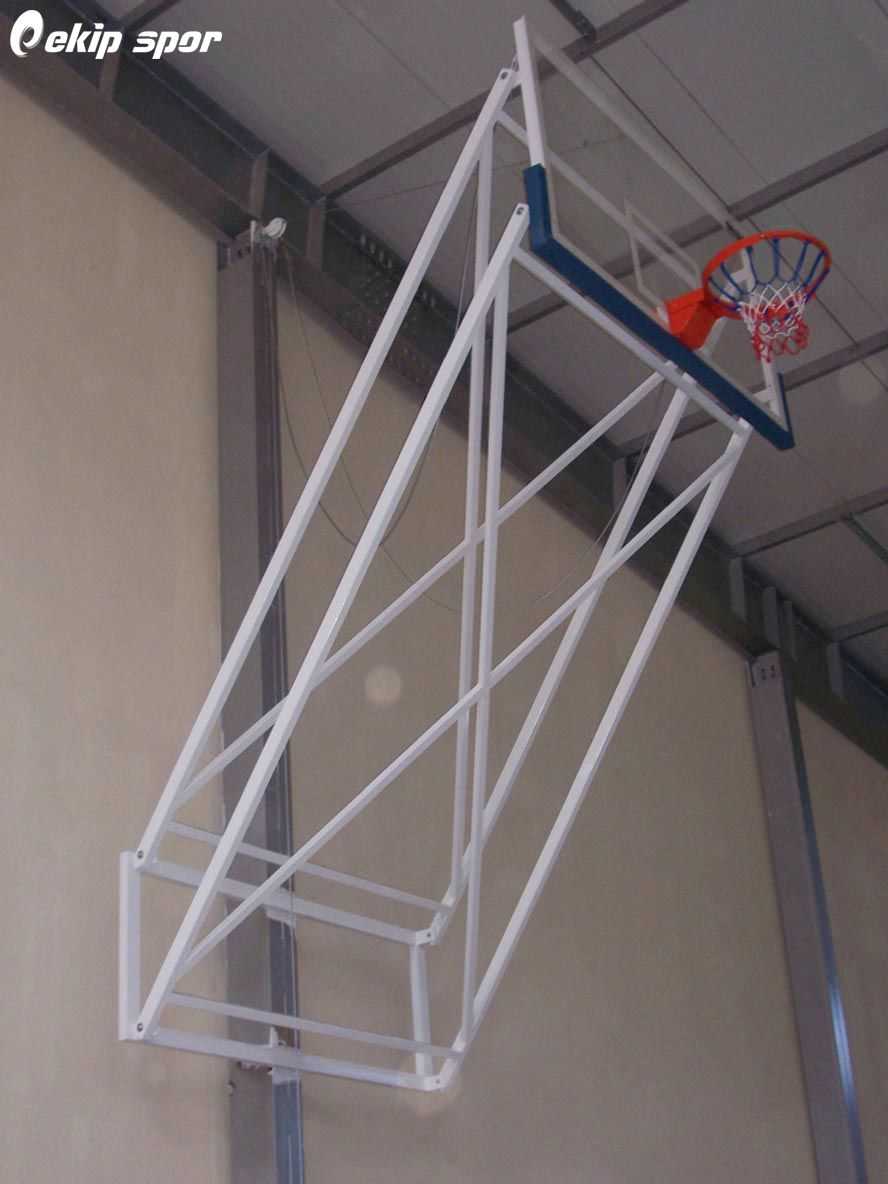 Basketbol Potası Duvara Montaj Yükseklik Ayarlı Katlanabilir Mekanik 20 mm Cam (Ak) Panya 105 x 180 cm 20 Sabit Çember