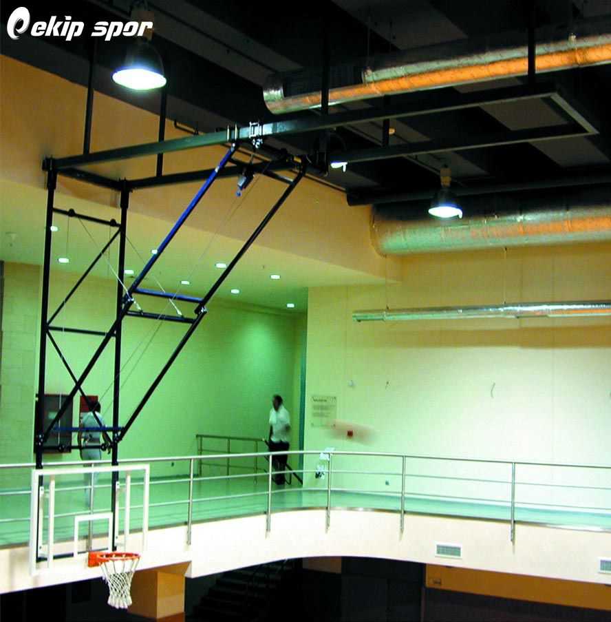 Basketbol Potası Tavana Montaj Elektrik Tüp Motorlu 15 mm Cam (Ak) Panya 105 x 180 cm 20 Sabit Çember